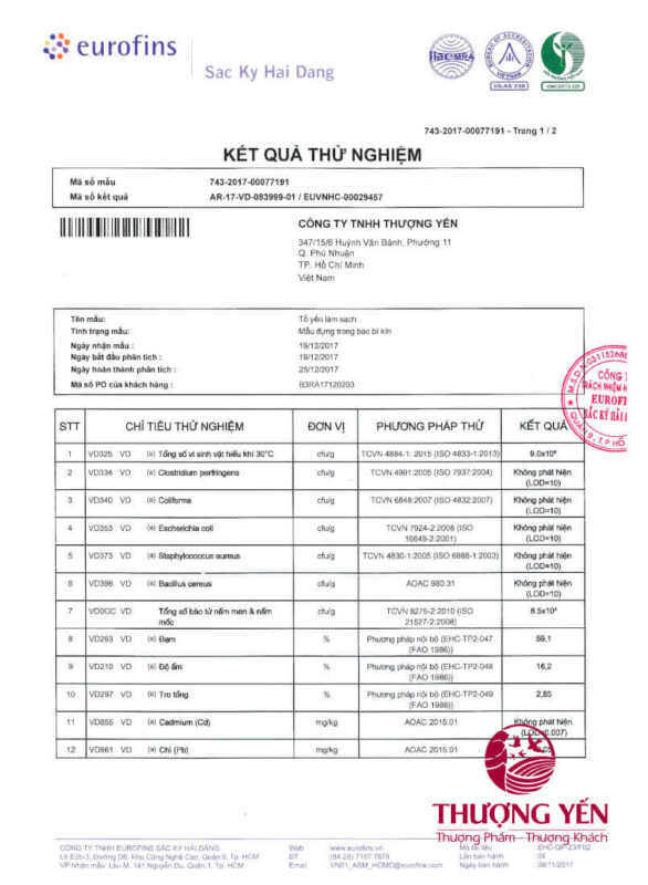 | 6 | Yến tươi (hộp gồm 17 túi) | 550gram | 2.800.000 |